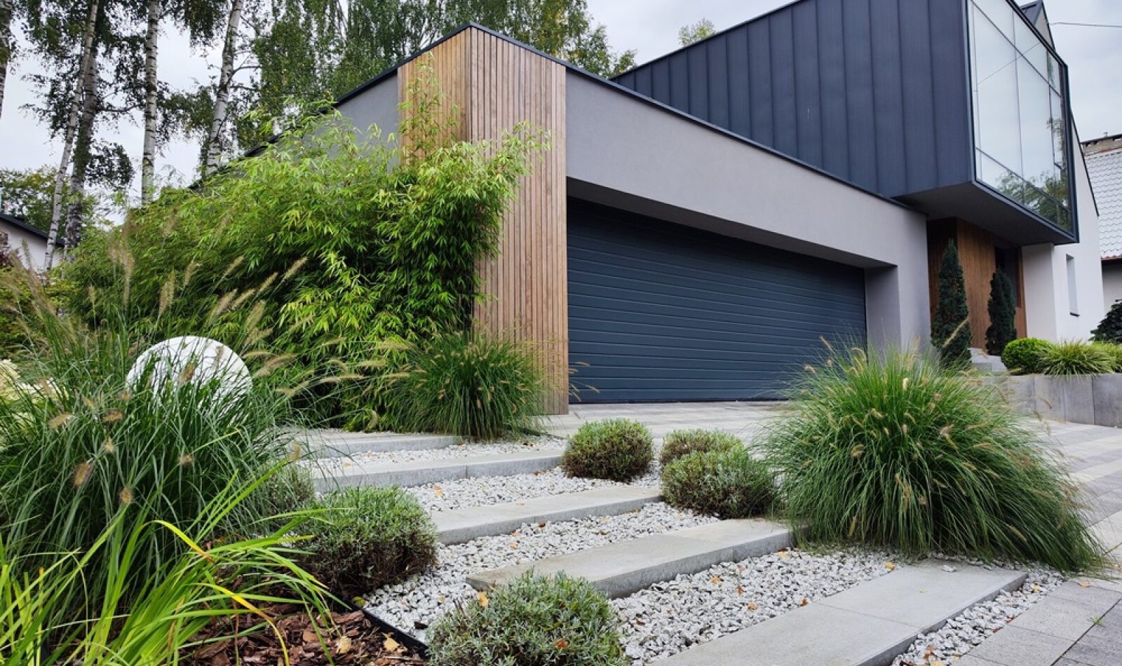 Nowoczesna, geometryczna realizacja, która opiera się stworzeniu prywatnej, przestrzeni z poszanowaniem istniejących drzew w tym przypadku brzóz, które precyzują układ ogrodu oraz są ich silnym akcentem. Ścieżki poprowadzone z wielkoformatowaych płyt wkoponowane zostały w układ brzóz co pozwoliło stworzyć nietypowe ciągi komunikacyjne podkreślone roślinnością. Zwiewności założeniu nadają tutaj trawy ozdobne takie jak miskanty olbrzymie, bambusy, trzcinniki ostrokwiatowe czy rozplenice japońskie.